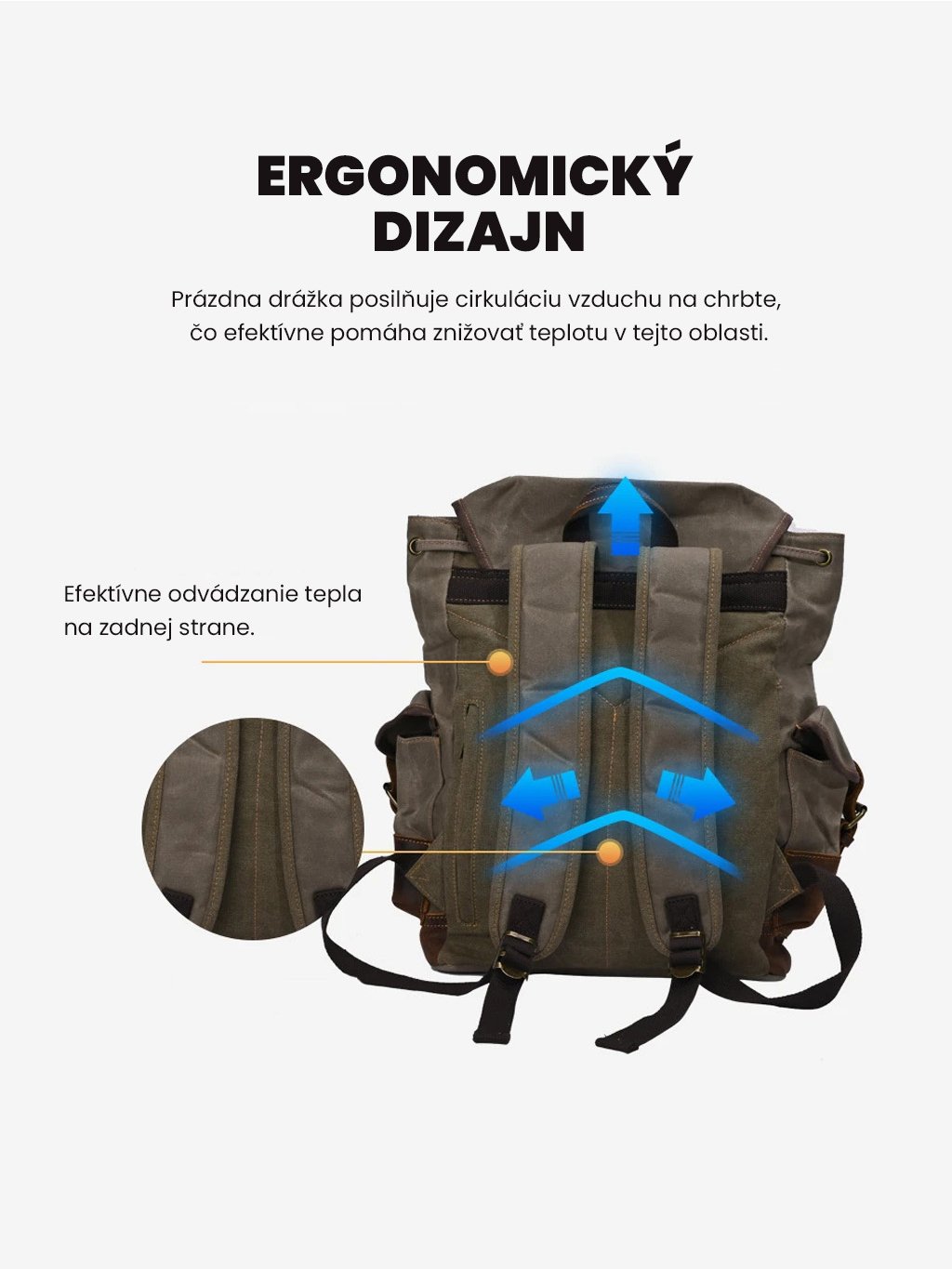 - Outdoor a turistika – voskované plátno a koža odolajú oderu, ergonomický strih podrží chrbát aj pri náročných trasách.