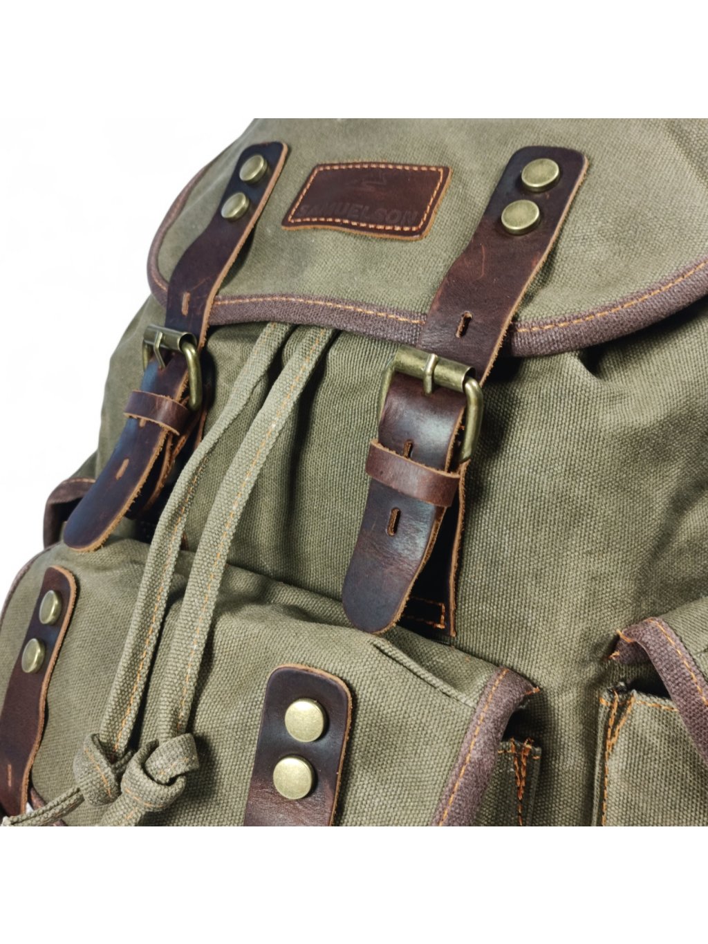 - Kožené detaily – strategicky umiestnené pre extra odolnosť tam, kde sa batoh najviac opotrebováva.