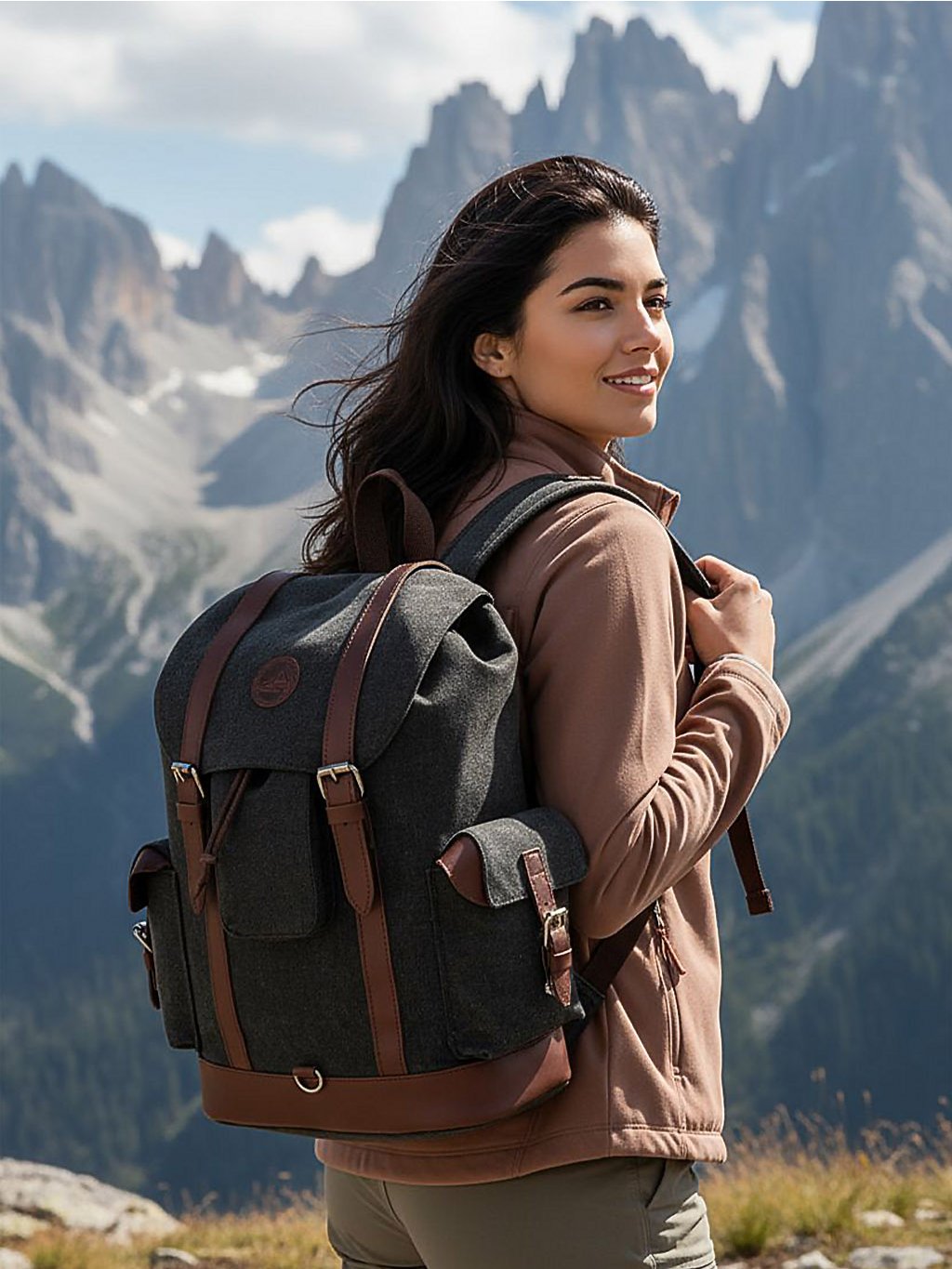 Nadčasový vintage dizajn s prvkami z pravej kože. Dostatok úložného priestoru na všetky potrebné veci. Vysoká odolnosť a dlhá životnosť vďaka kvalitným materiálom. Vhodný ako turistický ruksak, poľovnícky batoh, batoh na cestovanie aj každodenné používanie.