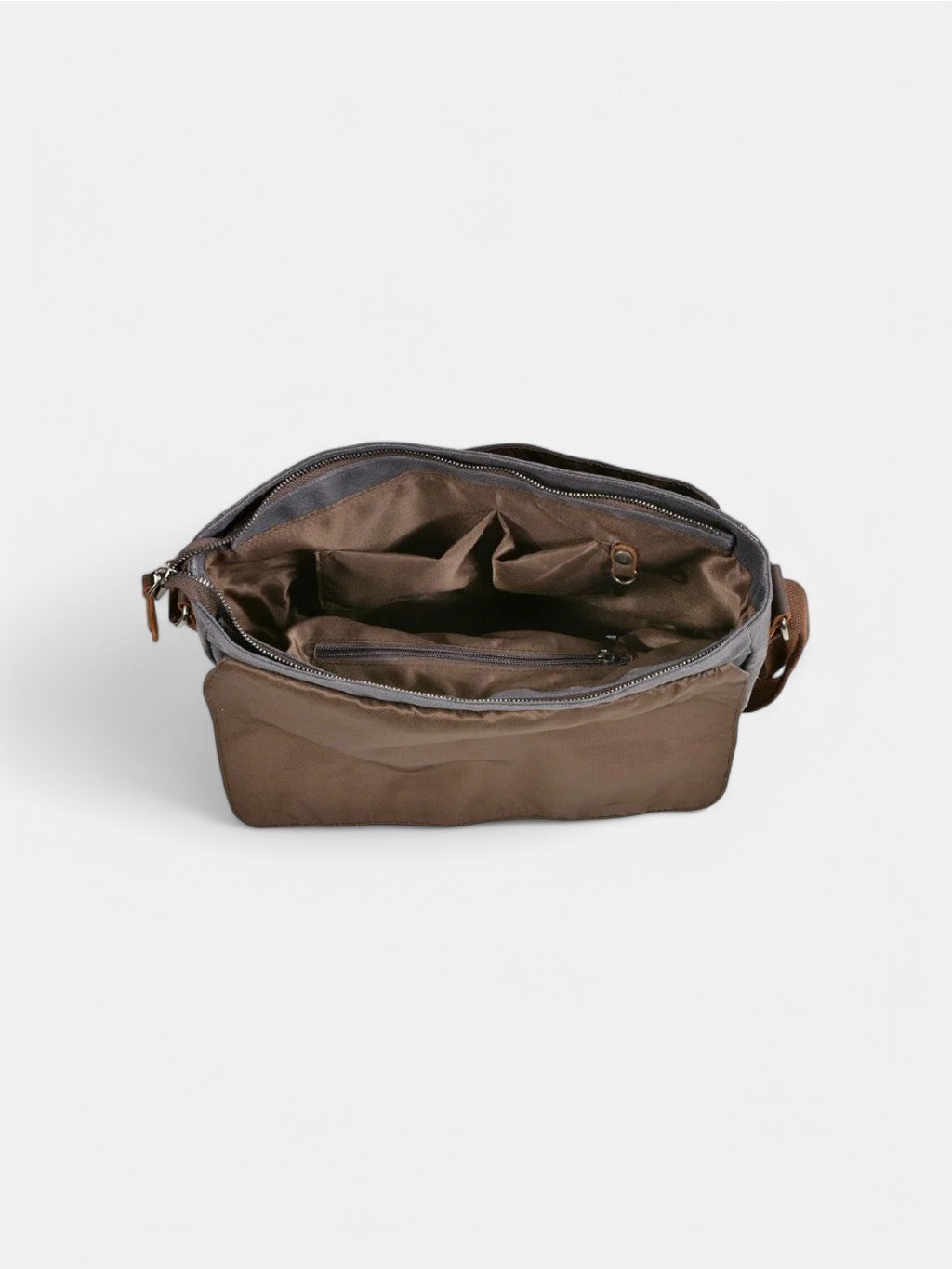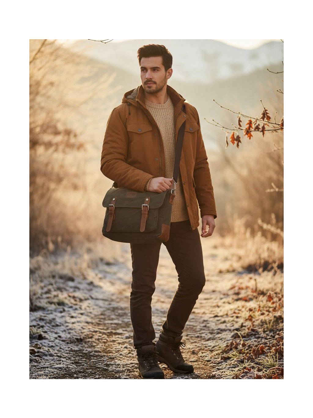 Štýlová poľovnícka taška spája elegantný, minimalistický dizajn s maximálnou praktickosťou. Vyrobená z odolného bavlneného plátna a doplnená prvotriednou hovädzou kožou s jemnou patinou, je ideálnym spoločníkom na každý deň. Robustné kovové pracky a pevný ramenný popruh zaručujú komfort, spoľahlivosť a dlhú životnosť – presne tak, ako od kvalitnej pánskej tašky očakávate.