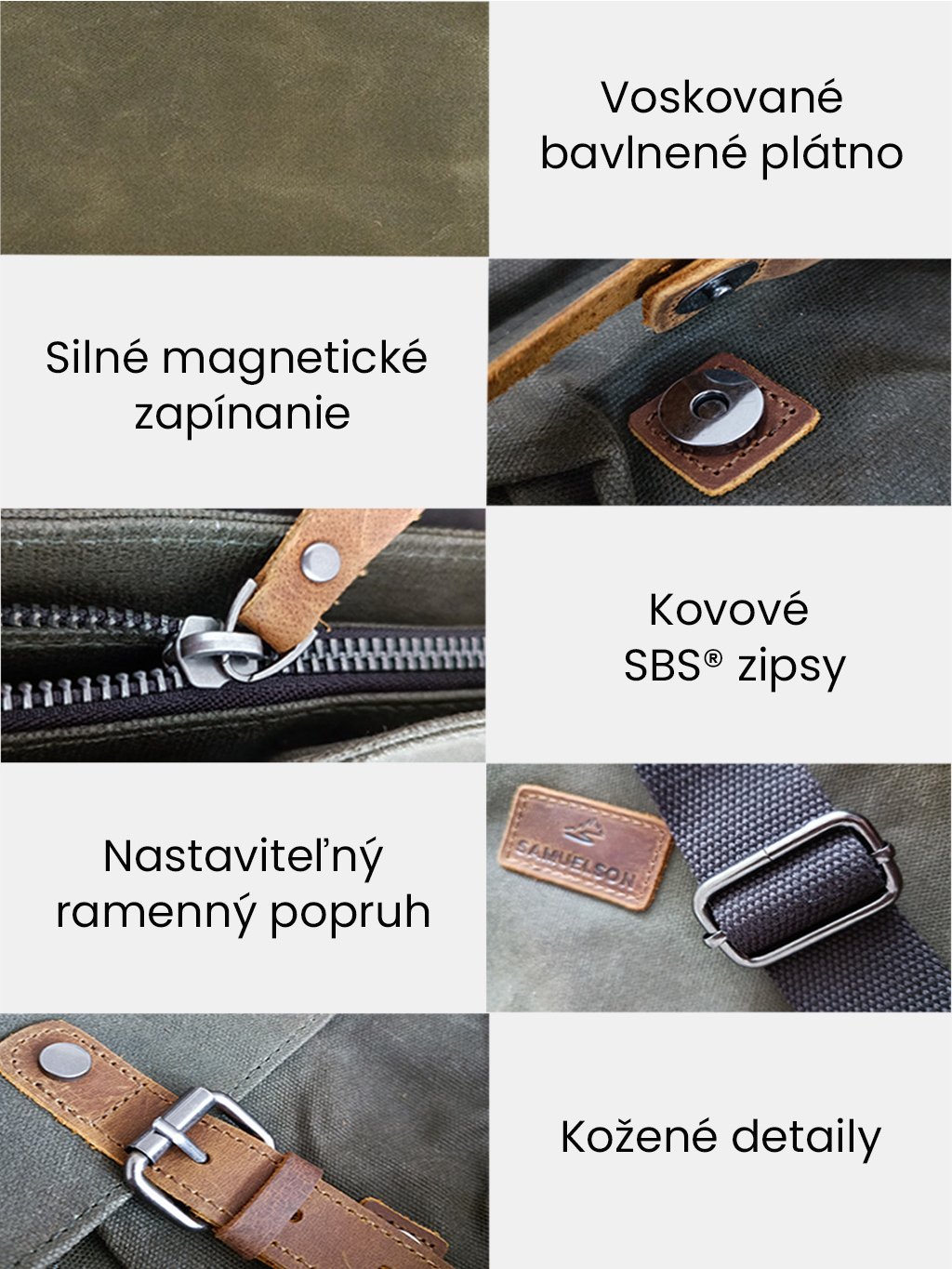 SAMUELSON si zakladá na skutočnej udržateľnosti a riadi sa filozofiou "menej je viac" – menej plytvania, menej odpadu a viac skutočnej hodnoty. Preto používa len tie najkvalitnejšie prírodné materiály, ako je pravá koža a odolné bavlnené plátno, doplnené o kovové komponenty a zipsy.