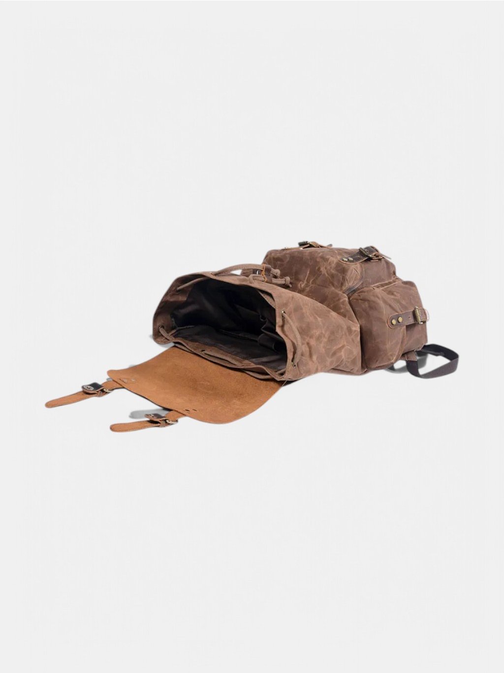 - Vyrobený z voskovaného bavlneného plátna a pravej hovädzej kože.